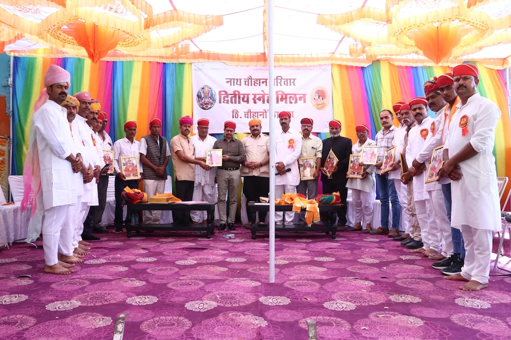 दिंनाक : 10/11/2024 : चौहानों का गुड़ा में नाथ चौहान फलीचड़ा परिवार द्वारा आयोजित परिवारिक बैठक की शुरुआत माँ आशापुरा और महाराणा प्रताप स्मारक पर माल्यार्पण के साथ की गई। राव साहब देवेंद्र नाथ जी फलीचड़ा ने हमें हमारी प्रमुख धरोहर और वंशावली का मार्गदर्शन देते हुए हमारे गौरवशाली इतिहास की जानकारी प्रदान की। इस आयोजन में नाथ चौहान के 18 ठिकानों के ठाकुर साब और 500 से अधिक गणमान्य नागरिक उपस्थित रहे। कार्यक्रम में शिक्षा, रोजगार, कुरीतियों के उन्मूलन, और क्षत्रिय संस्कारों को बढ़ावा देने पर चर्चा की गई। अध्यक्ष गणपत नाथ जी चौहान (टिलोरा) ने सती माता मंदिर निर्माण की जानकारी दी। नाथ चौहान परिवार द्वारा ग्राम चौहानो का गुड़ा में यह एक सफल आयोजन रहा, और आगामी बैठक टिलोरा में रखने का निर्णय लिया गया।